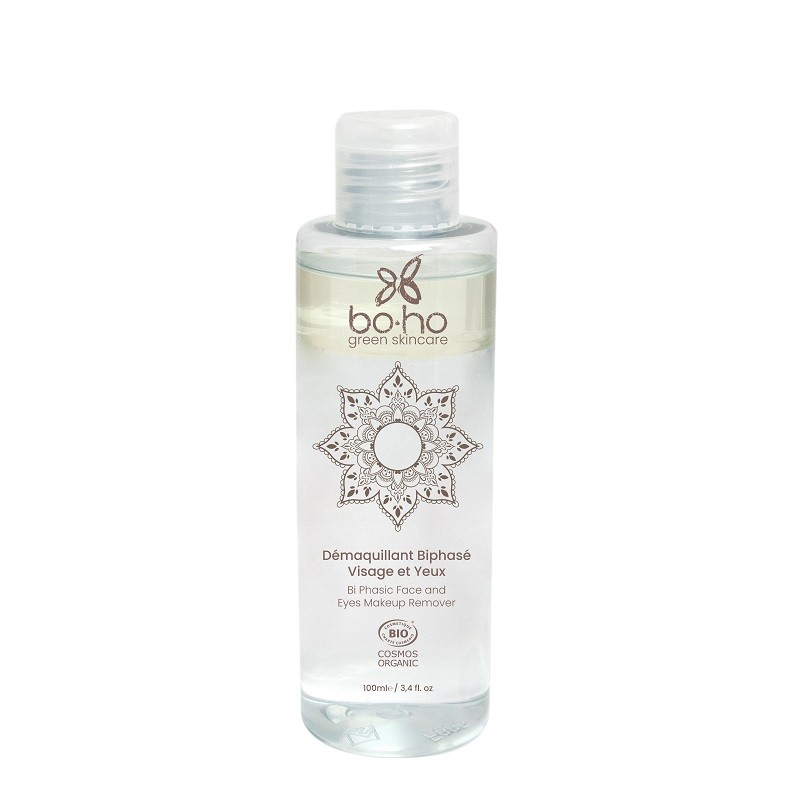 El desmaquillante bifásico certificado orgánico elimina el maquillaje de la cara y los ojos con eficacia y suavidad.