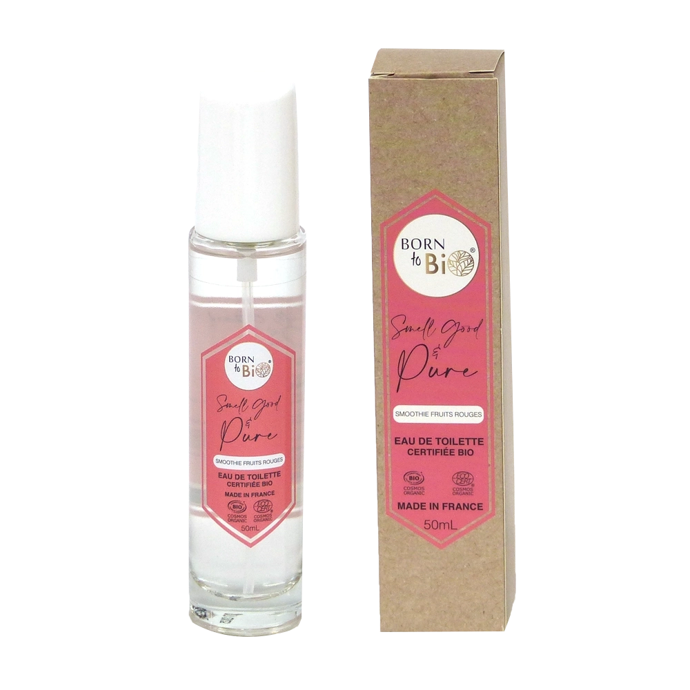El Eau de Toilette de Frutos Rojos Born to Bio está elaborado con ingredientes naturales, como manzana, mora, buchu, madera de almendro, melocotón, anís estrellado, frambuesa y un aroma de vainilla absoluta.